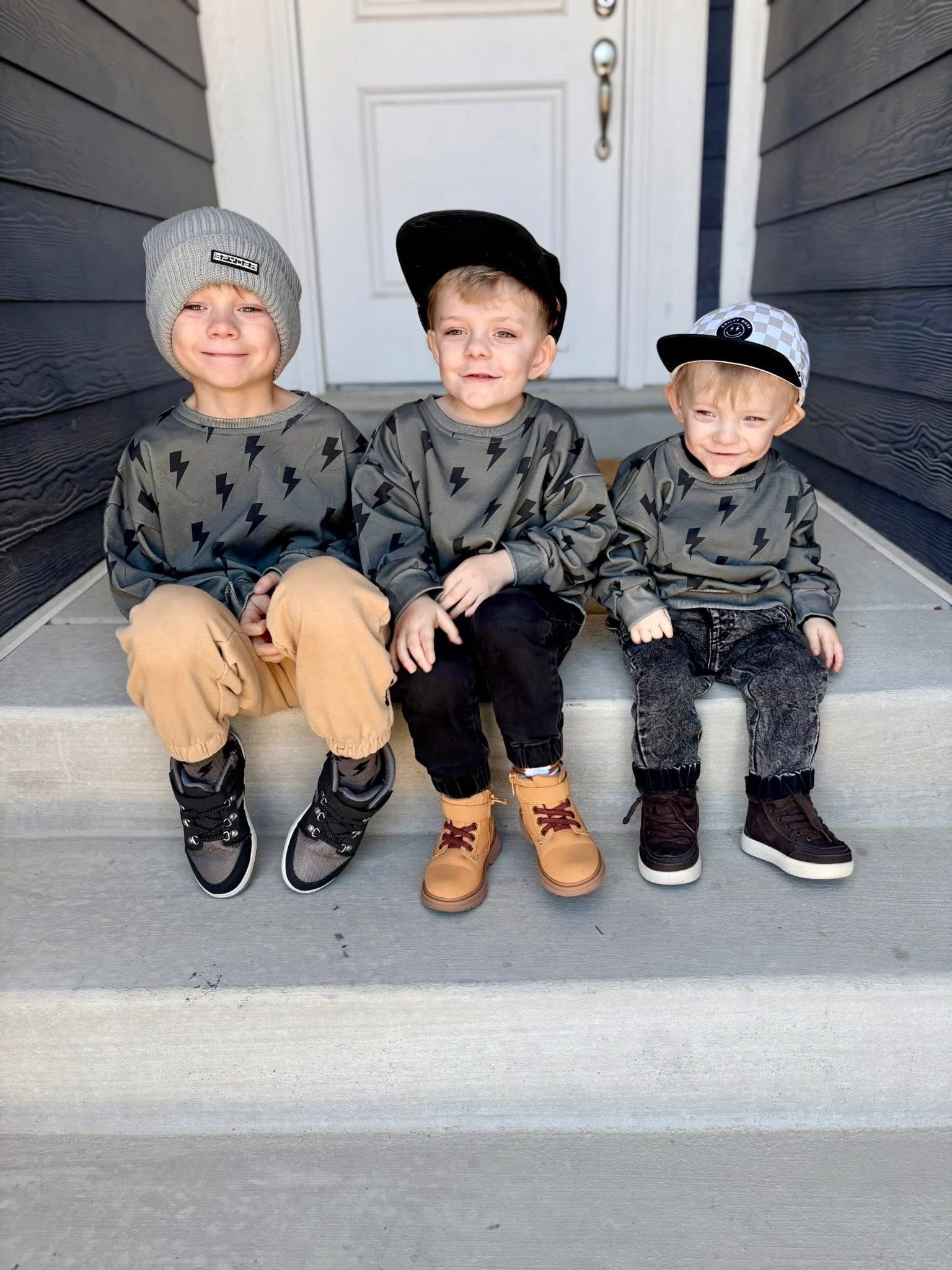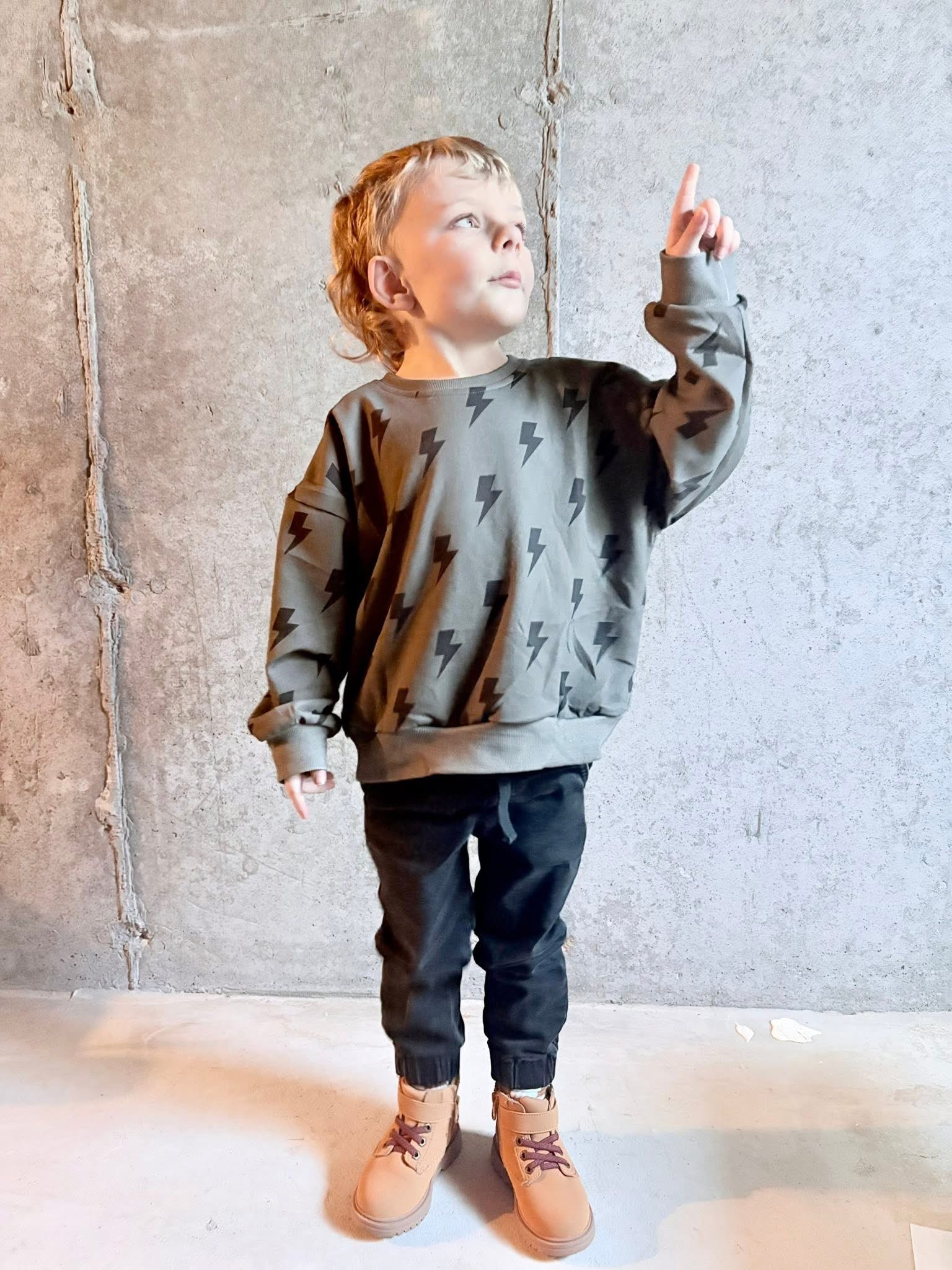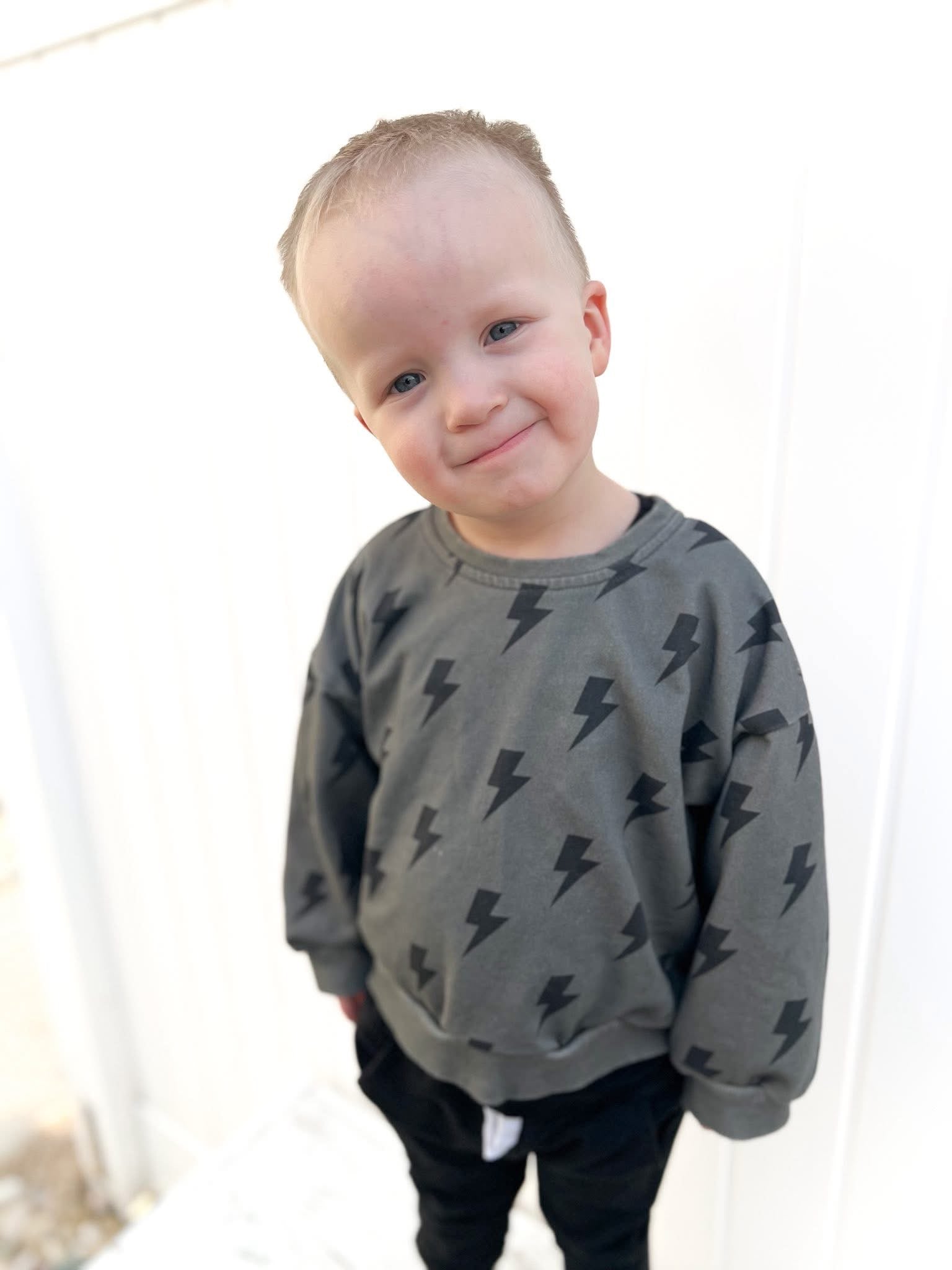 This everyday crew is made for everyday play with standout style. A soft stretchy crewneck sweatshirt that is the perfect extra layer for the cooler months, but is lightweight enough for Spring wear. The charcoal toned background provides a modern style with the bold bolts providing an effortlessly cool look.