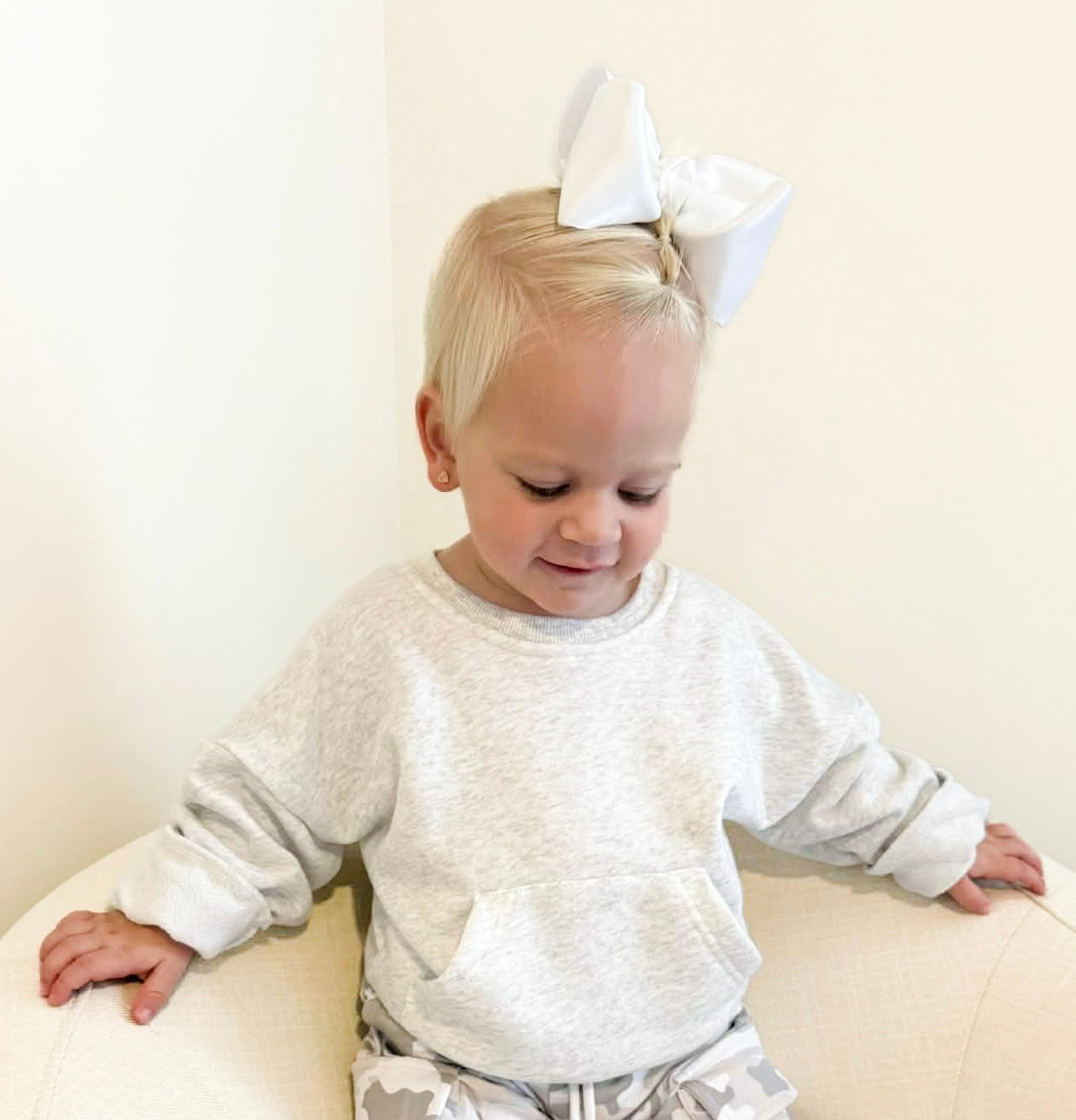 An everyday essential crewneck. This soft, ash gray crewneck features a relaxed fit and cozy feel that's perfect for layering or wearing on its own. It's lightweight yet warm, which makes it ideal for play days, lounging or a day out. The neutral tone pairs well everything which makes it a go to staple you'll reach for again and again.