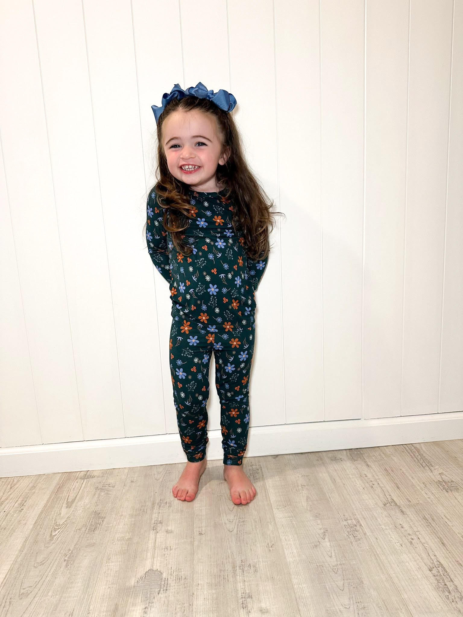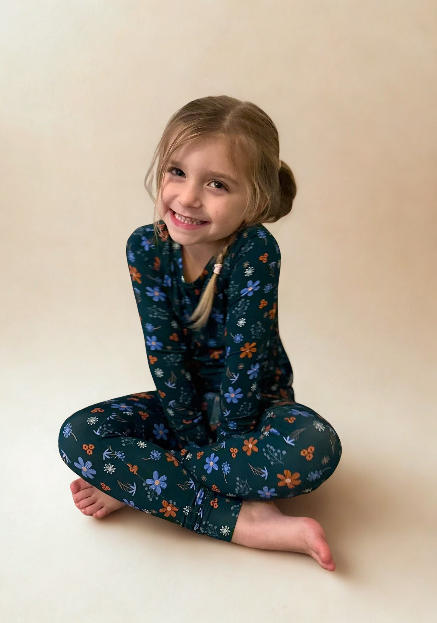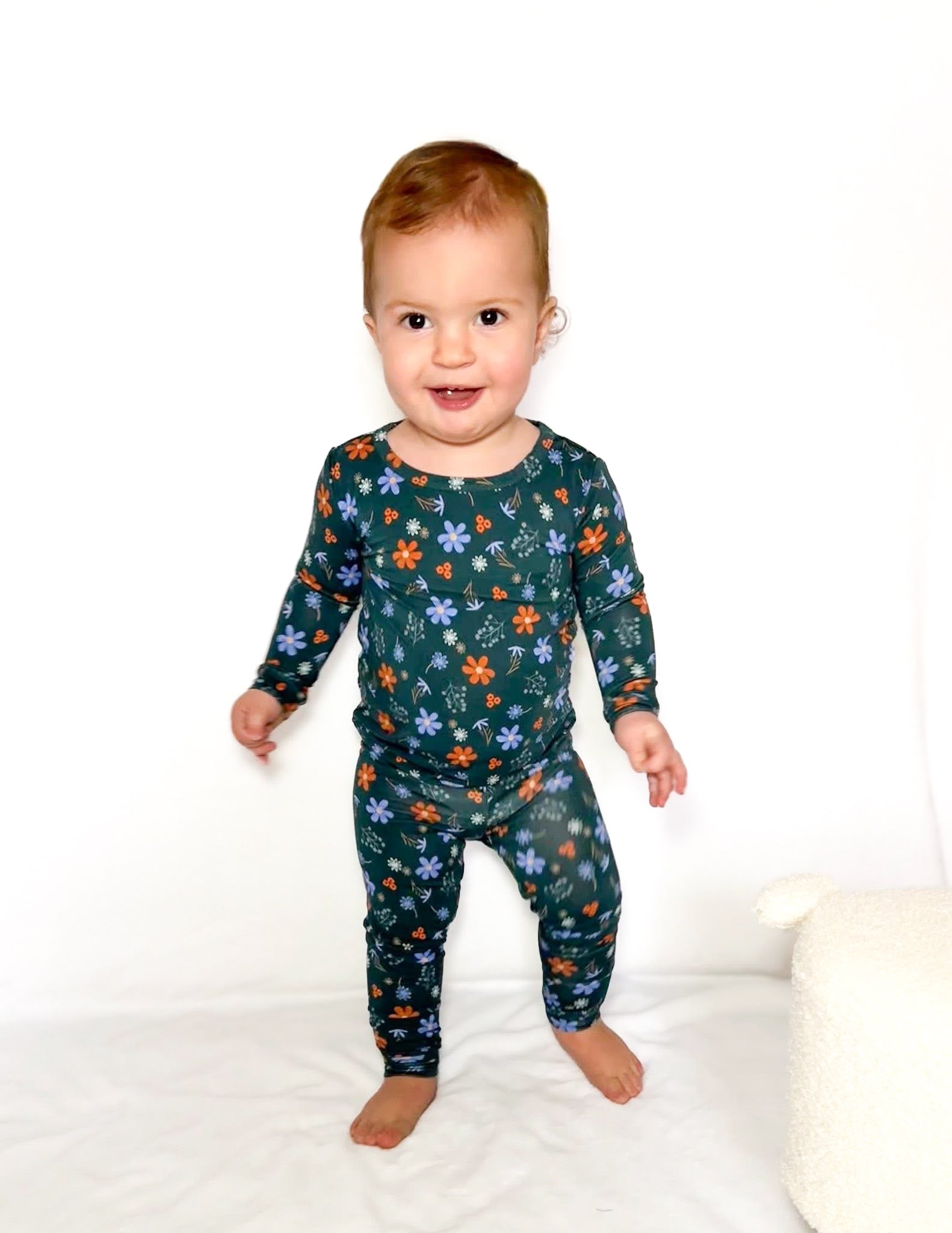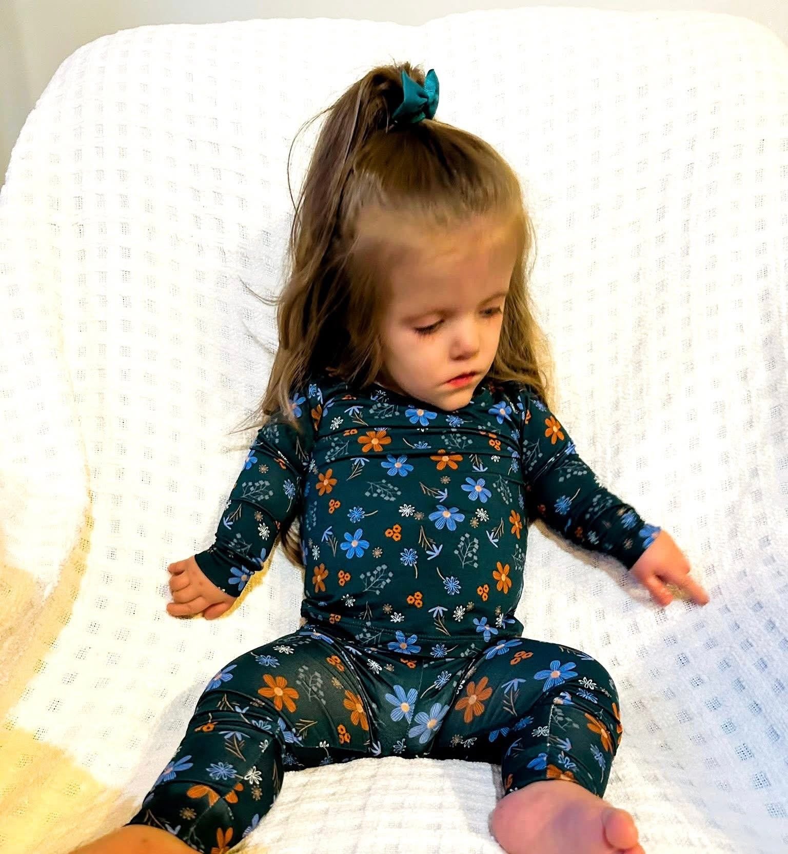 Meet Midnight Garden, a fall favorite in full blooms. Our Midnight Garden Bamboo brings cozy comfort and whimsical charm to bedtime and beyond. Features a rich forest emerald green with autumn florals that is buttery soft and breathable. Perfect for snuggles, play or fall outings.